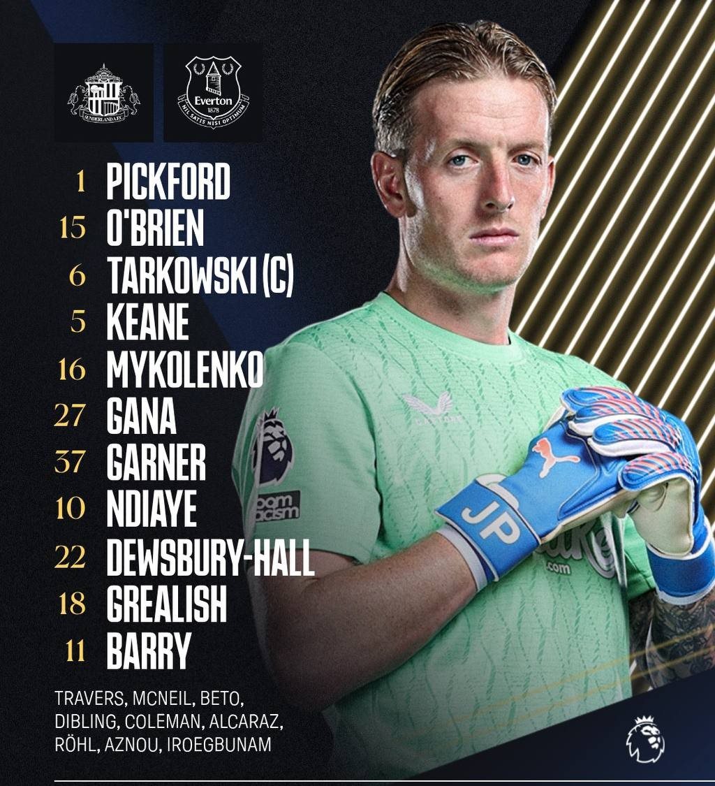 Everton: Pickford – O’Brien, Tarkowski, Keane, Mykolenko – Gueye, Garner – Ndiaye, Dewsbury Hall, Grealish – Barry