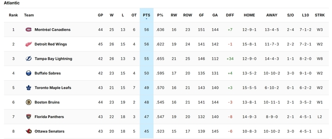 Detroit moves into the top 3 in the East, one point behind leader Carolina and tied for points with Montreal. Canadiens managed to deal with Florida 6:2, and Alex Texier scored the first hat trick in his NHL career.