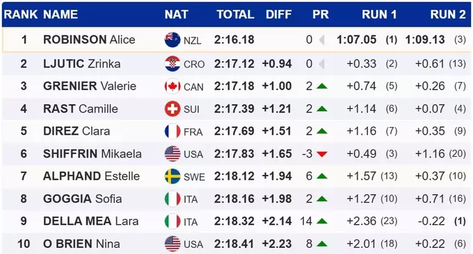 The second consecutive victory in the giant was achieved by New Zealand skier Alice Robinson, who held the first step during the competition.