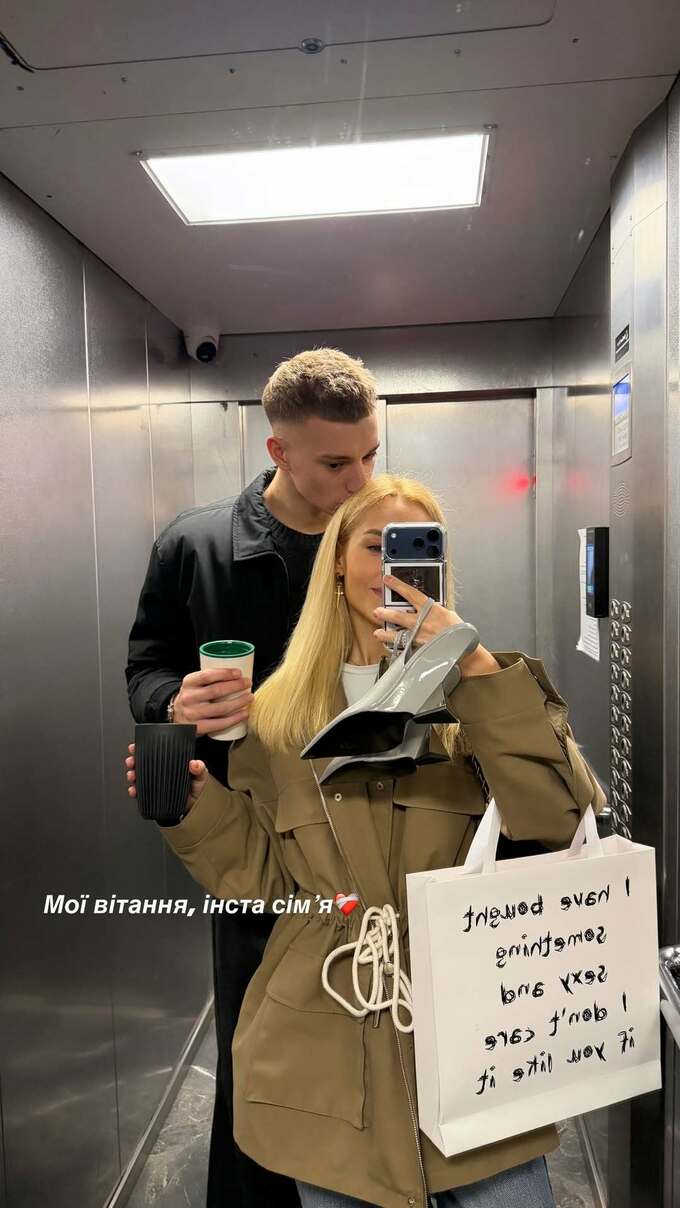 In the photo, the couple is in the elevator: Brazhko tenderly kisses Dasha on the head, and she takes a selfie with a slight smile.