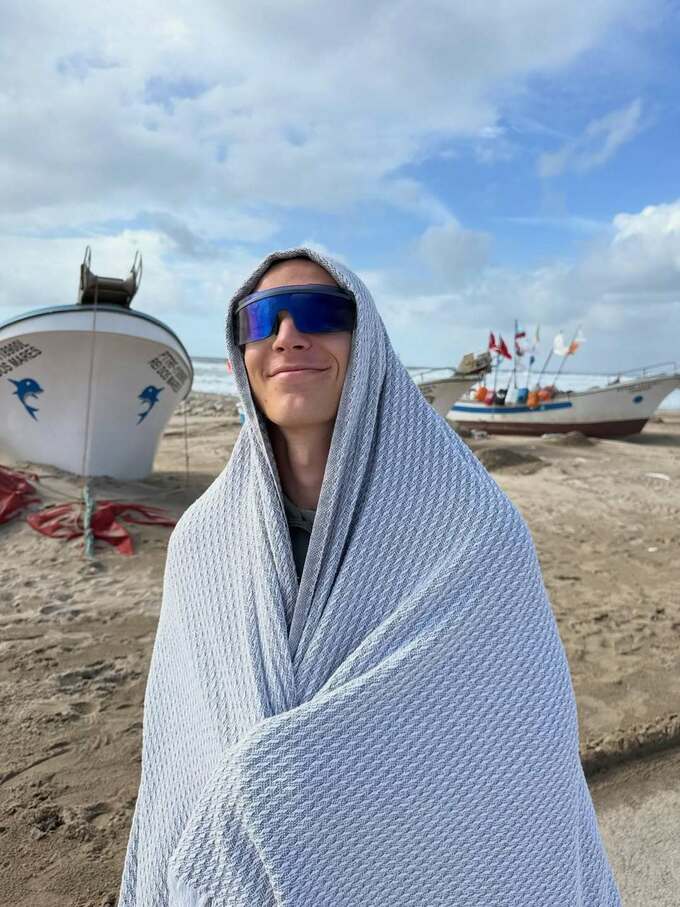 The football player spends time near the ocean, enjoys the warm climate and does not hide his smile.