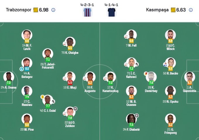 Ratings of the match “Trabzonspor” – “Kasimpasa” from SofaScore