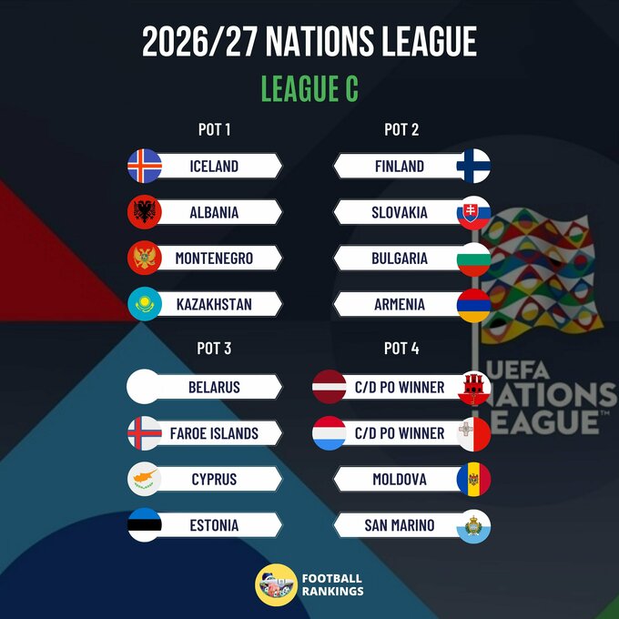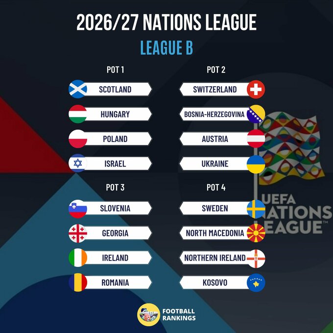 UEFA Nations Leagues 2026/27. Baskets for drawing