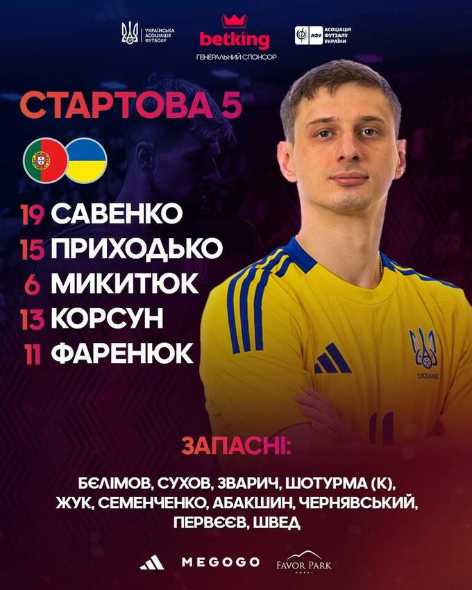The starting five of the Ukrainian futsal team for the match with Portugal have been named