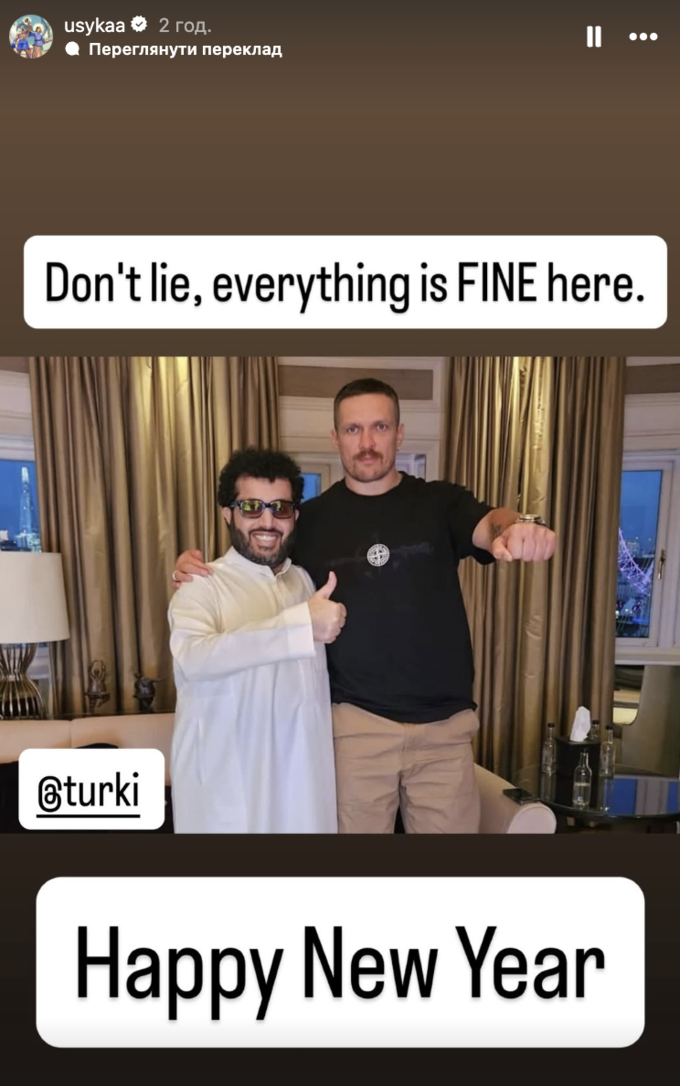 “Don’t lie, everything is fine here. Happy New Year,” Usyk wrote.