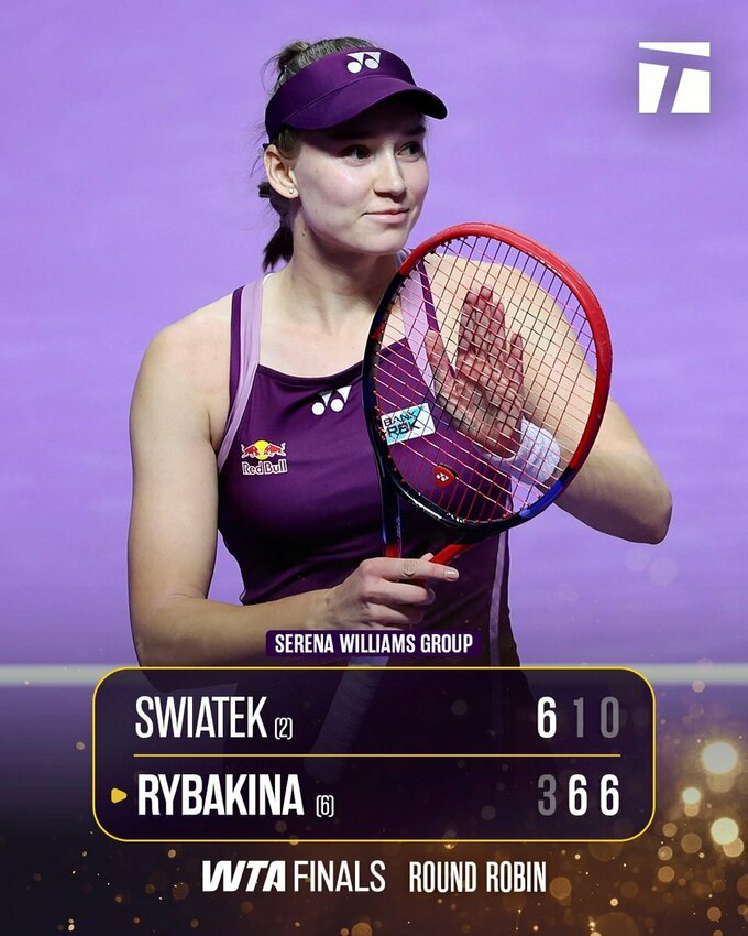 According to the results of two rounds, Rybakina advanced to the semifinals of the WTA Finals early from the first place thanks to two victories. But after two defeats, Keys lost its chances for the playoffs.