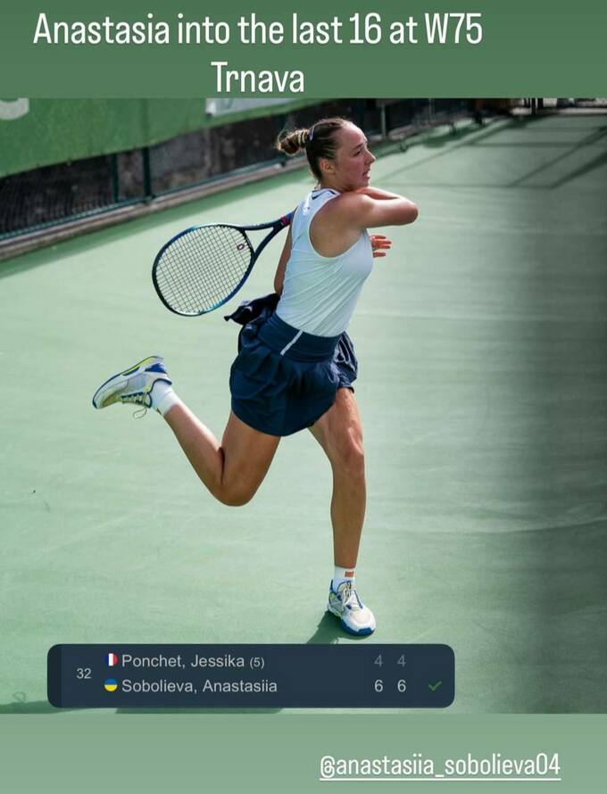 Ukrainian tennis player Anastasia Soboleva (WTA 267) had a successful start at the ITF W75 tournament in Trnava (Slovakia), which is held on indoor hard surfaces.