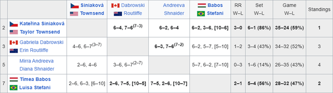 On November 6, meetings of the third round were held in Liesel Huber’s group. Babos and Stephanie won the ticket in a head-to-head matchup with Gabriela Dabrowski / Erin Rutliff. The first in the quartet were Sinyakova and Townsend, who won three victories – in the last round they defeated Mirra Andreeva and Diana Schneider.