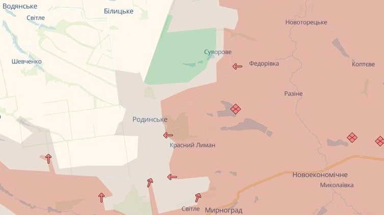 DeepState reports indicate that Russian military forces have advanced near Pishchane in Kharkiv and Rodynske in Donetsk, highlighting ongoing military activity in these regions. This follows earlier reports of troop movements in similar areas.