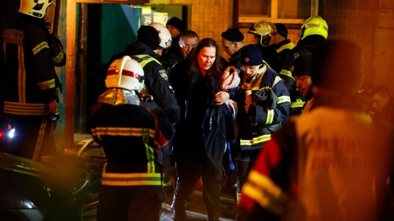 Зокрема, за повідомленням, у Дніпровському районі було влучання у 9-поверховий житловий будинок, там спалахнула пожежа, загинула одна людина”, — write: www.radiosvoboda.org